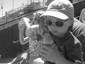 I got to go on the rollercoaster with the kids, and they both enjoyed their treats. A big cookie with frosting called "Double Trouble" for Porter and Dippin Dots for Ainsley.